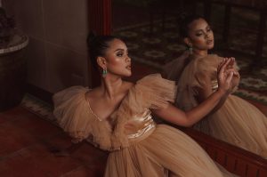 Do takiego zestawu warto dobrać buty na obcasie, które dodatkowo wydłużą nogi, oraz płaszcz lub kurtkę w stonowanych kolorach.
